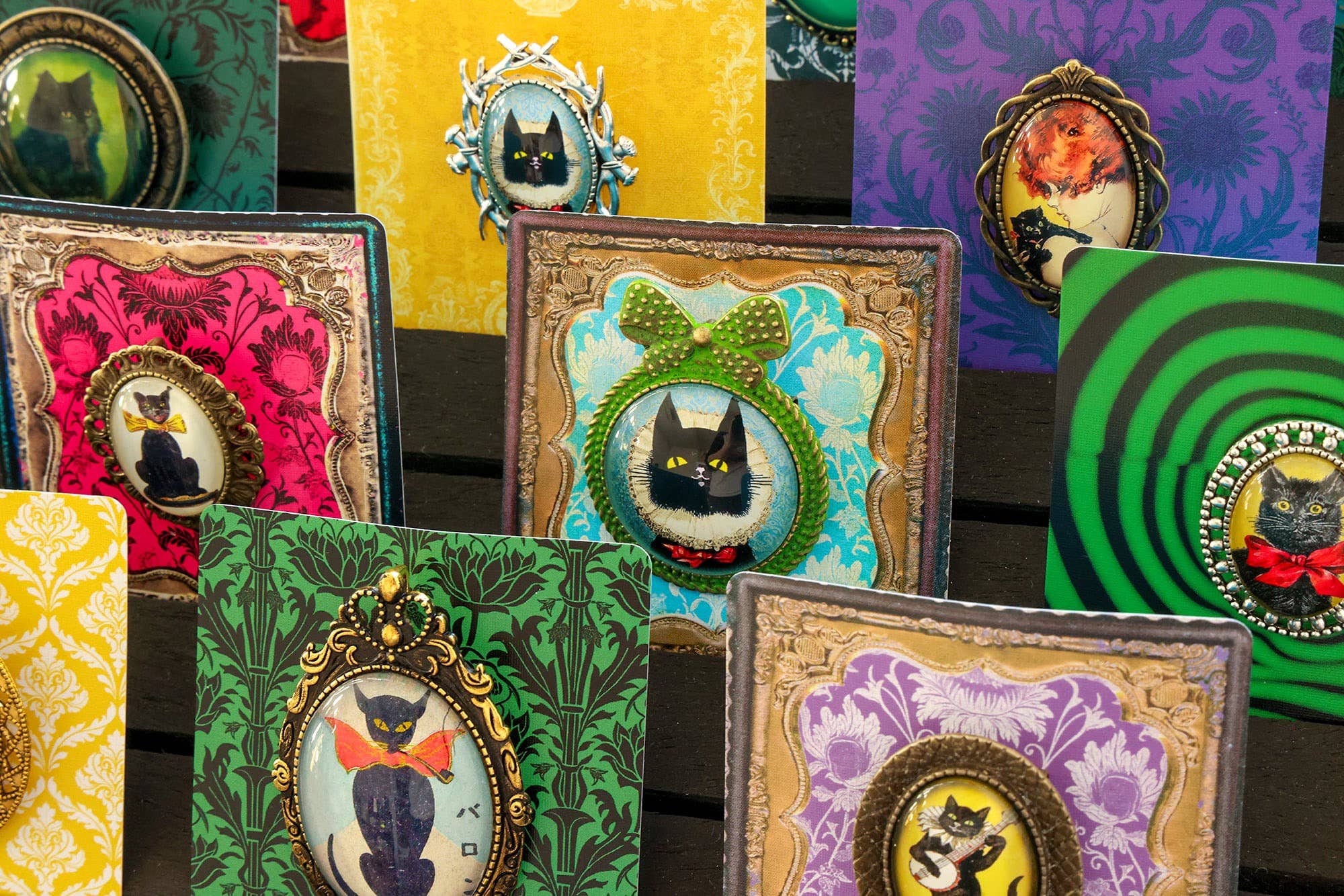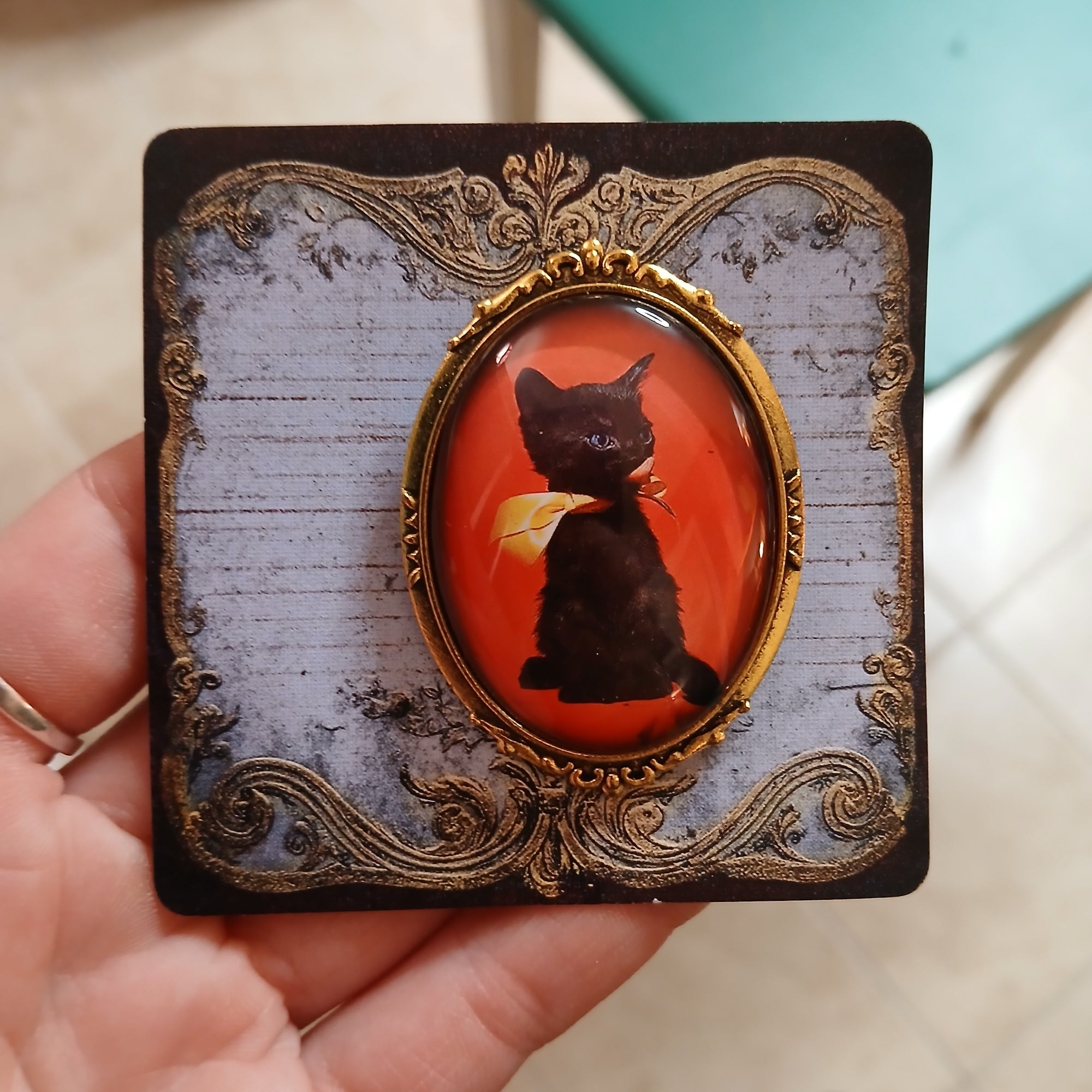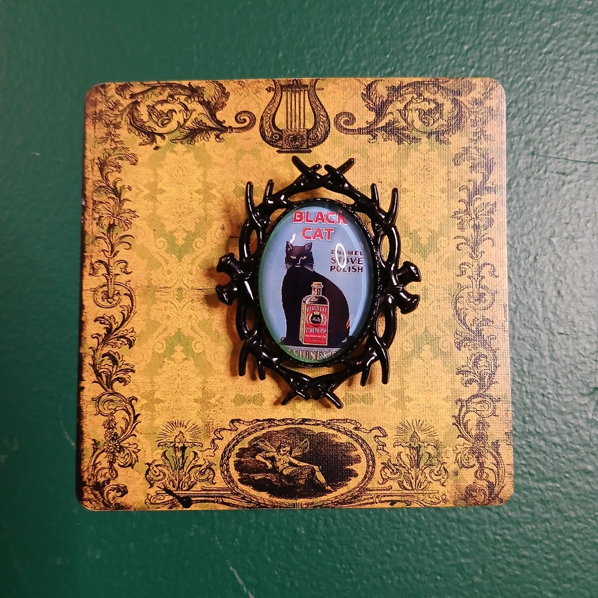 Vintage Black Cat Handmade Brooch - Black Cat Polish