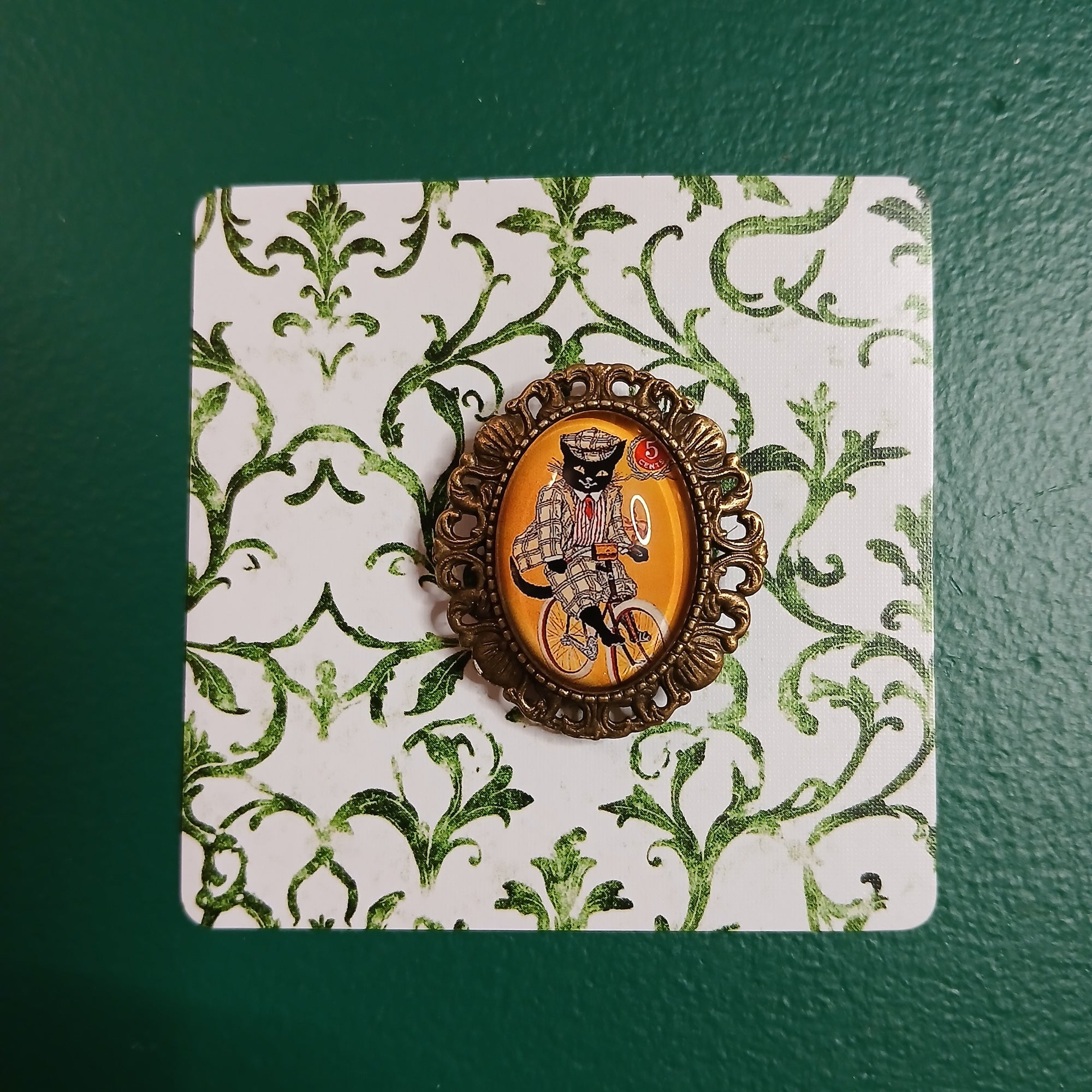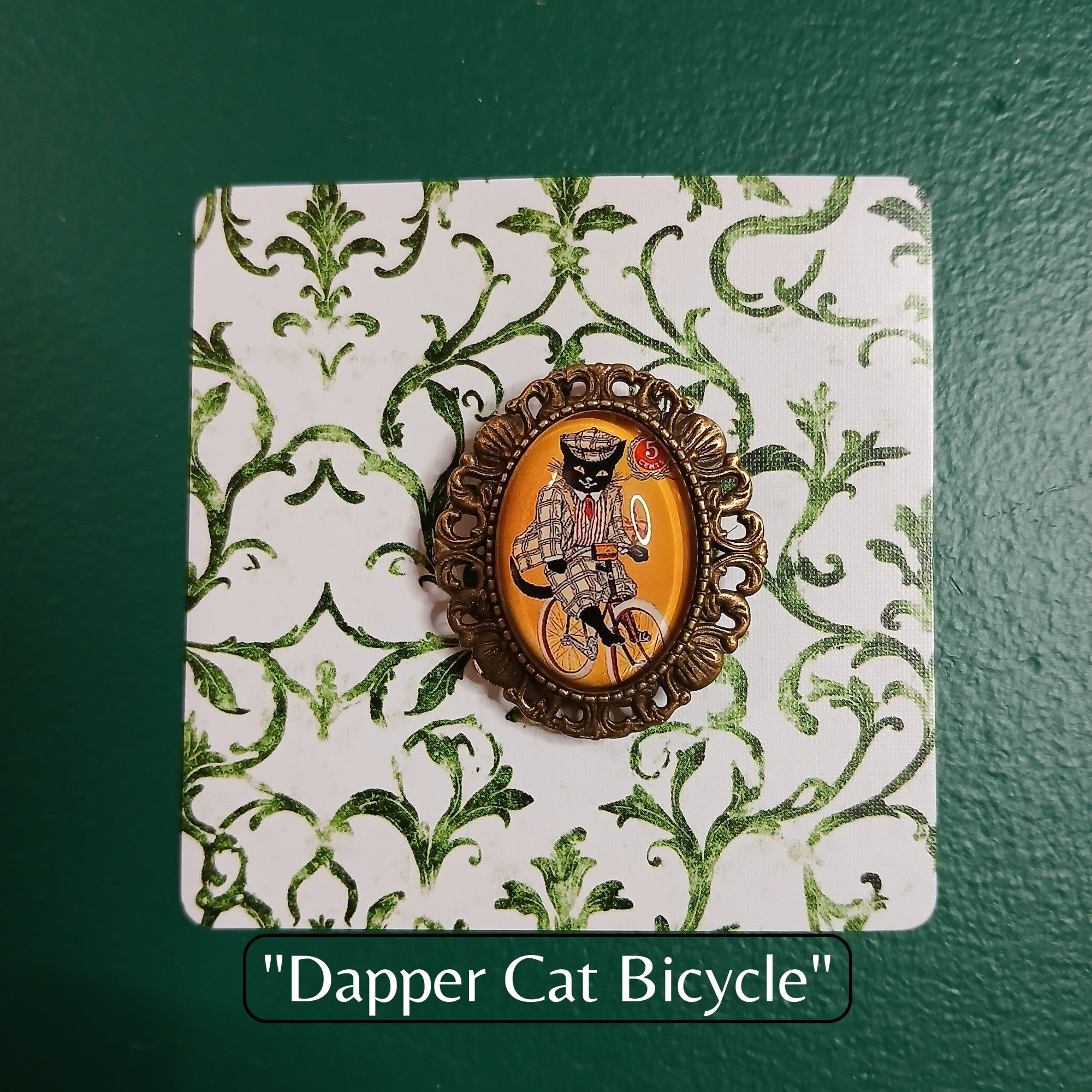 Vintage Black Cat Handmade Brooch - Dapper Cat Bicycle