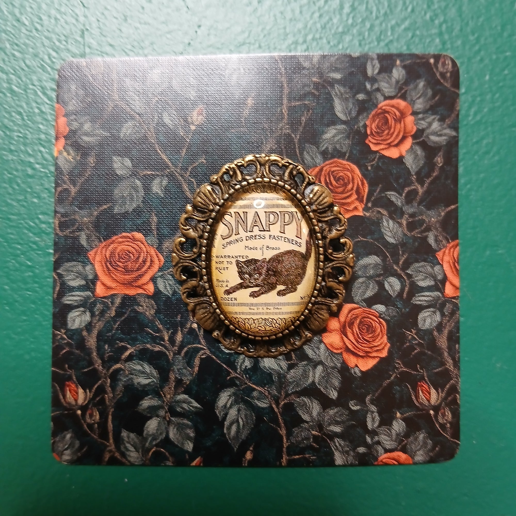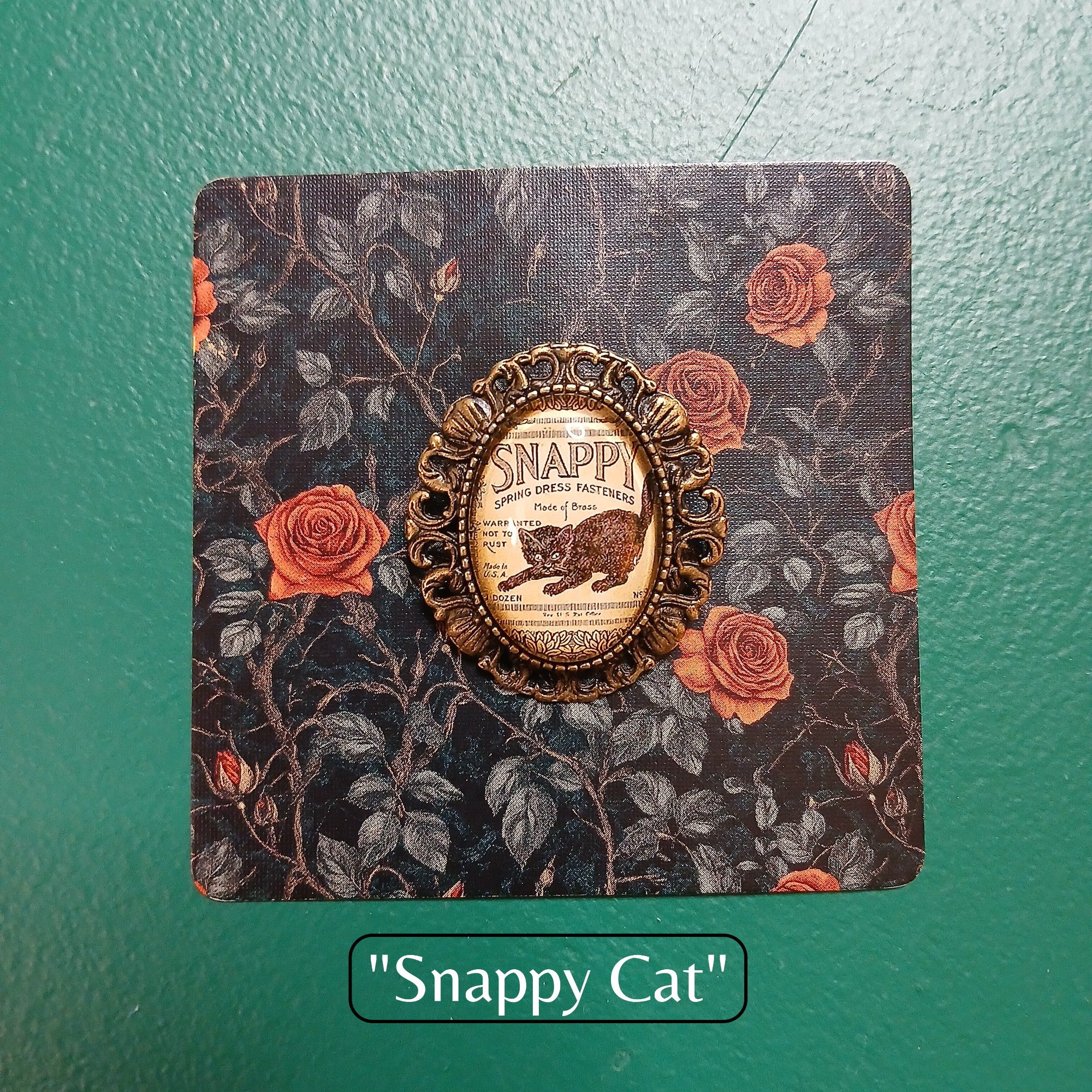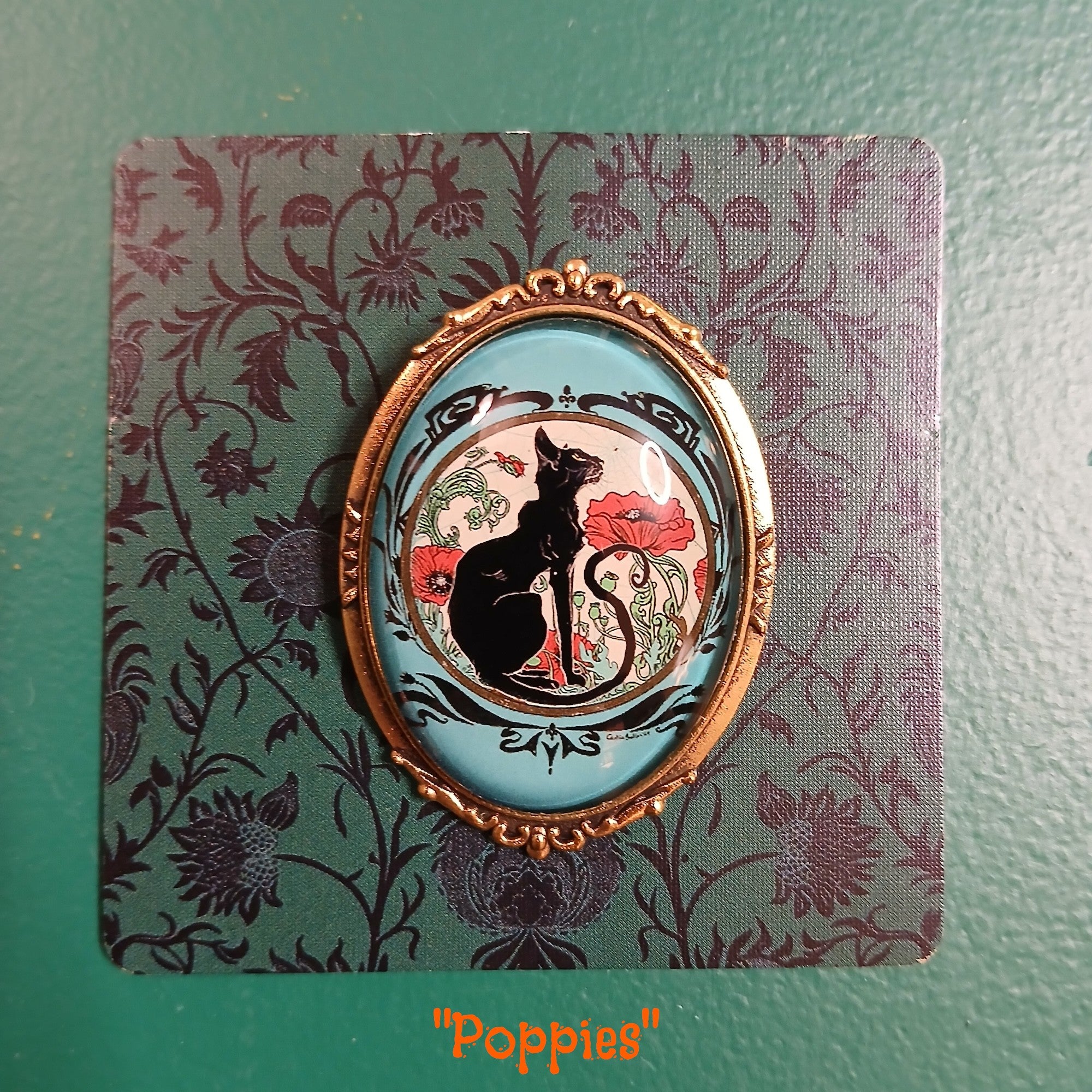 Vintage Black Cat Handmade Brooch - Poppies