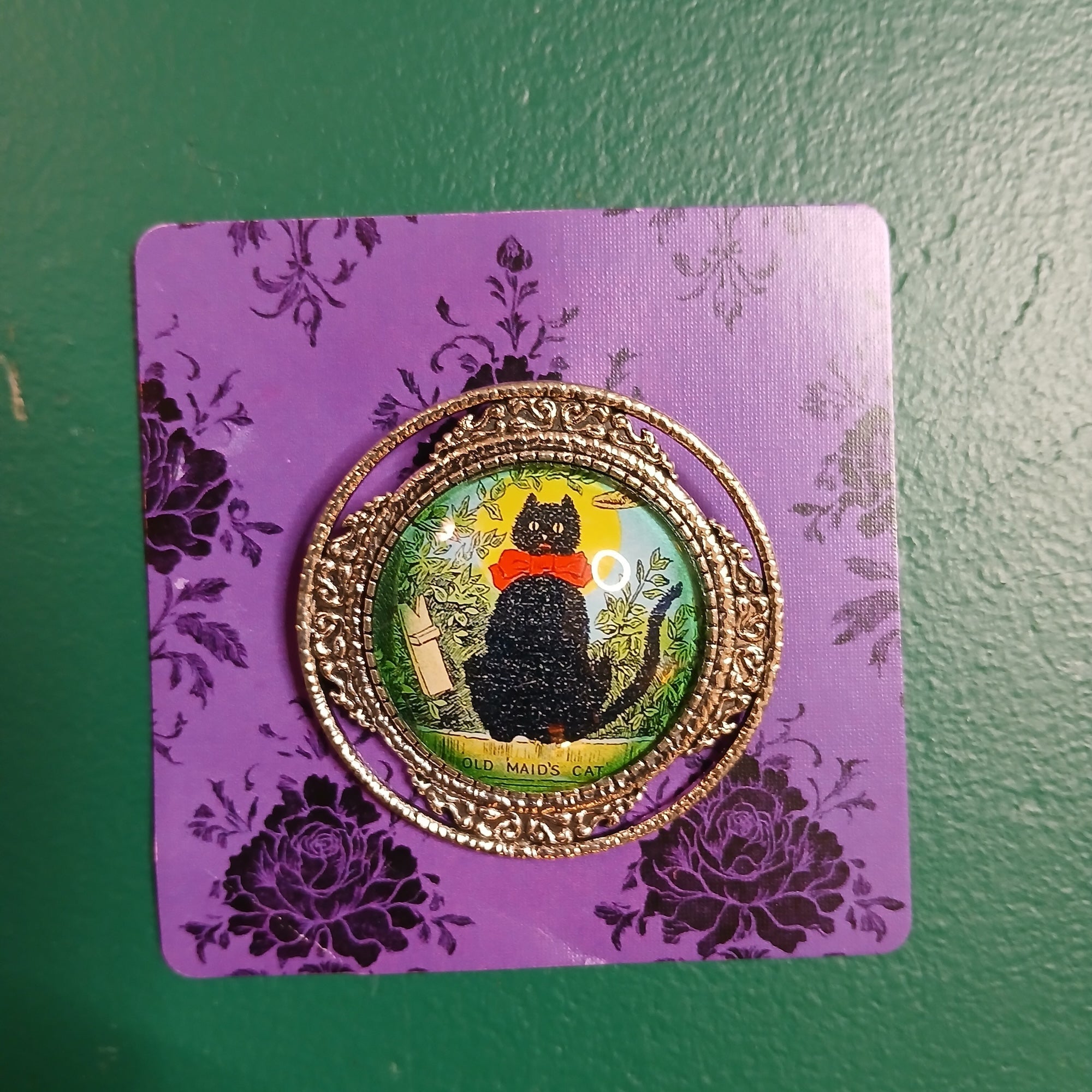 Vintage Black Cat Handmade Brooch - Old Maid's Cat