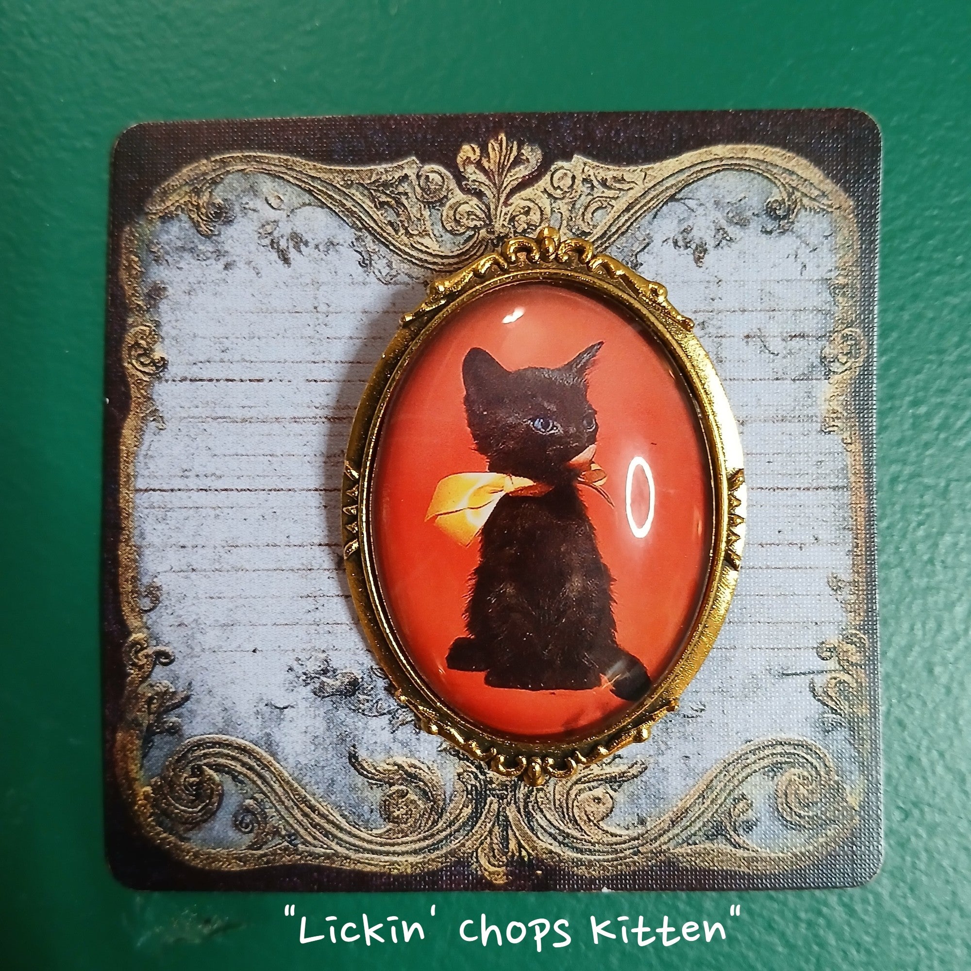 Vintage Black Cat Handmade Brooch - Lickin' Chops Kitten