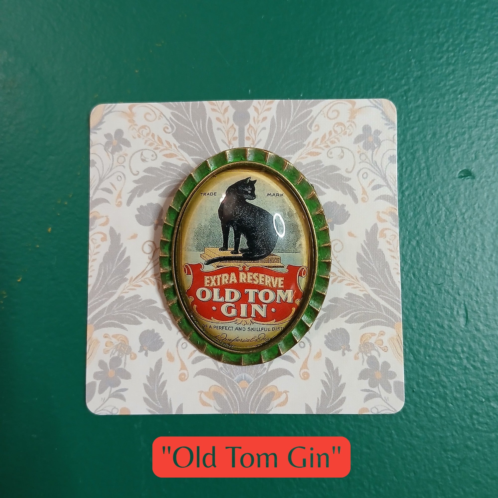 Vintage Black Cat Handmade Brooch - Old Tom Gin