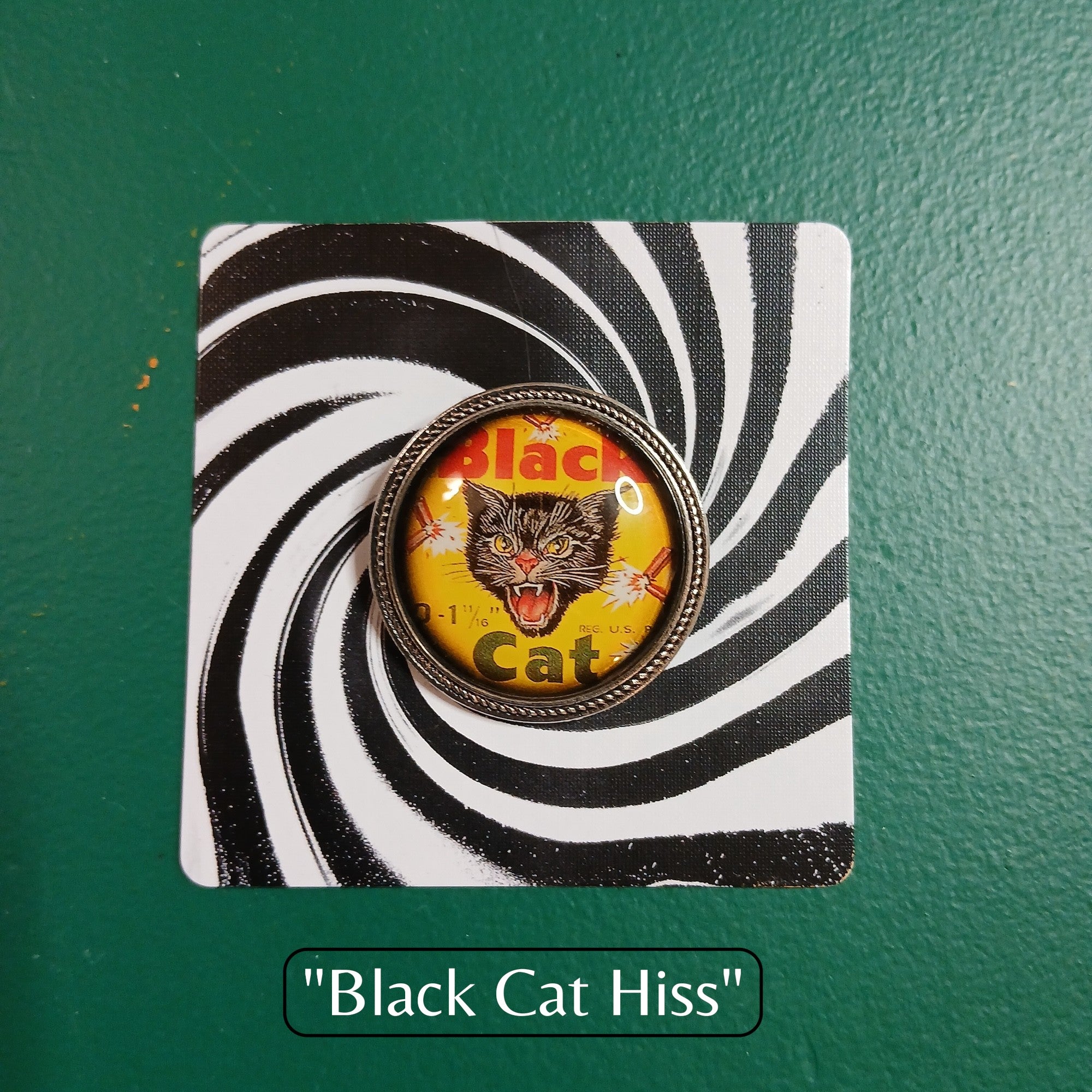 Vintage Black Cat Handmade Brooch - Black Cat Hiss