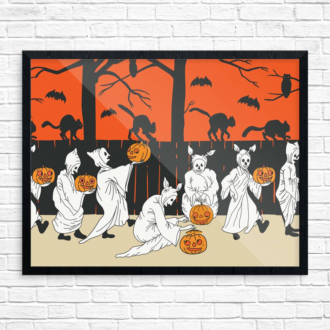 Mid-Mod Print - Halloween Ghost & Jack-O-Lantern Parade